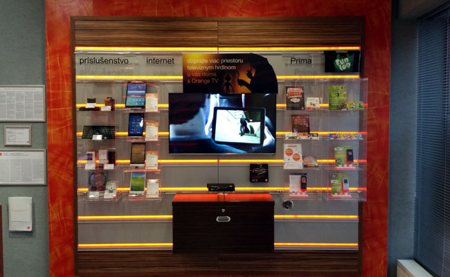 Dodávka a inštalácia TV techniky SAMSUNG do predajní ORANGE.Západné Slovensko.
